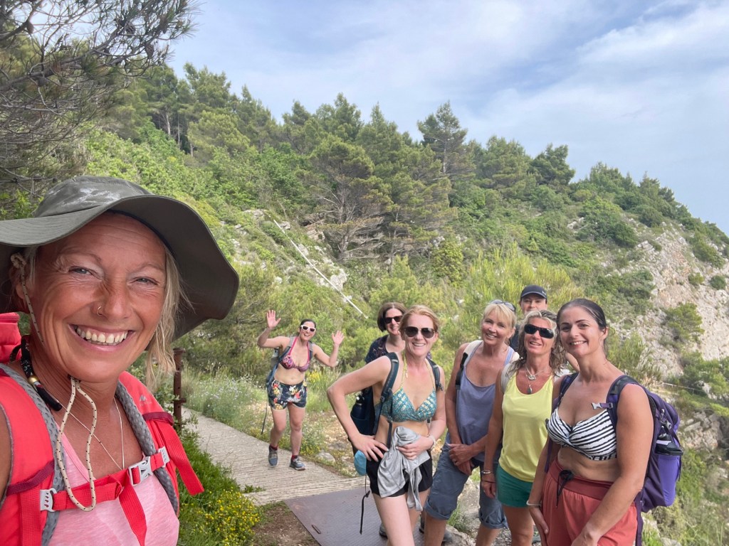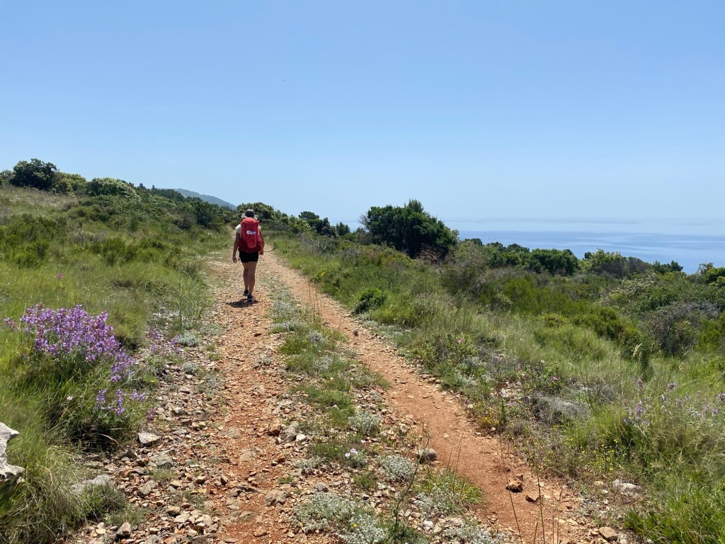 It’s not a gruelling hike, but it’s no cakewalk – a long day, along the coast path and also into the little fairy forests, where we take in the views, the flora and the fauna and a few unexpected animal friends. On a hot day, we have to be diligent about taking on water, taking breaks and having plenty of food to hand. It’s far off the tourist trail and we barely pass another soul on the route.