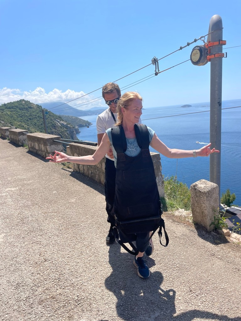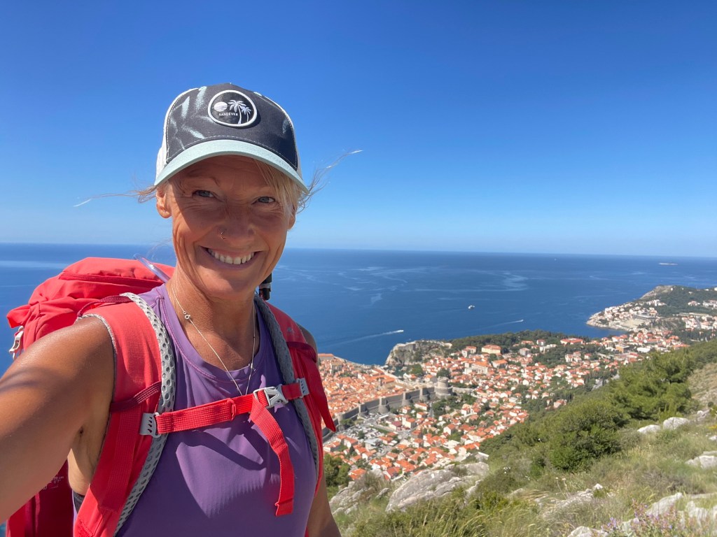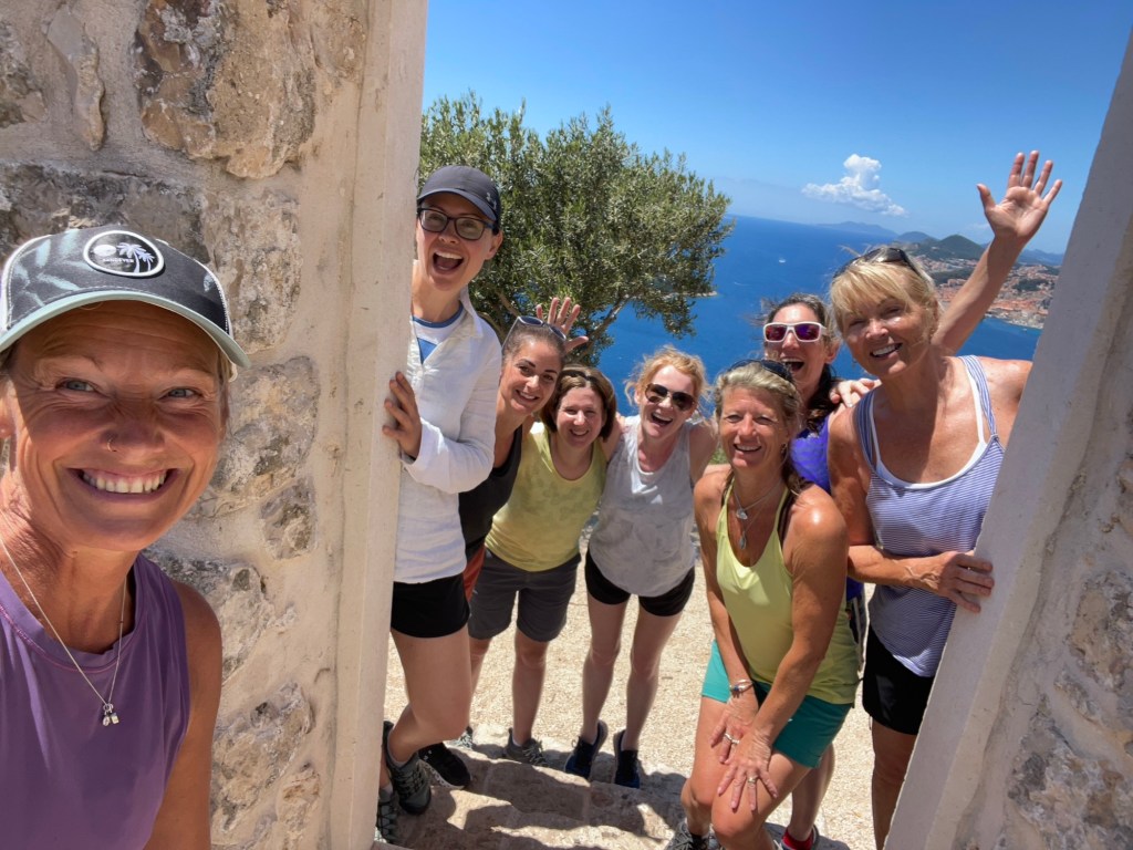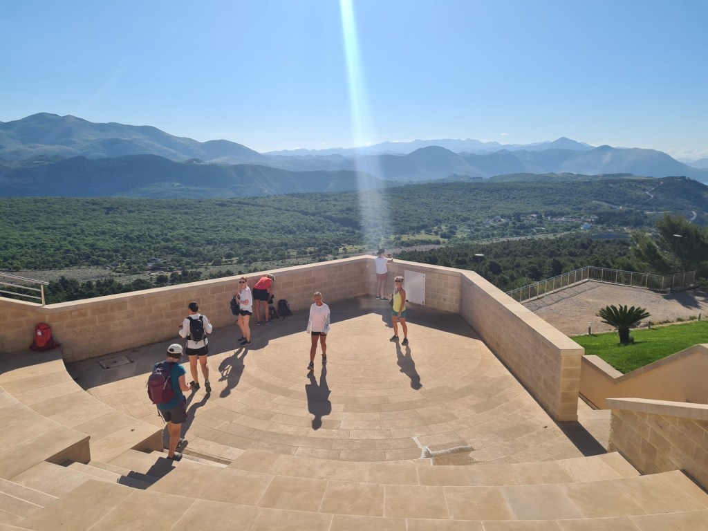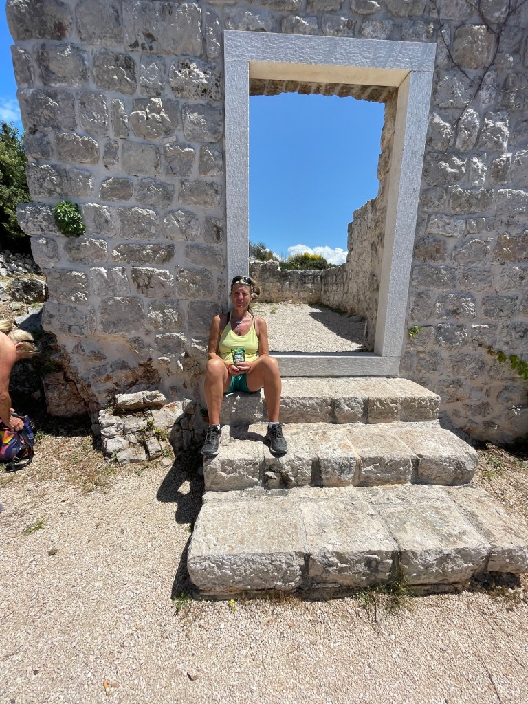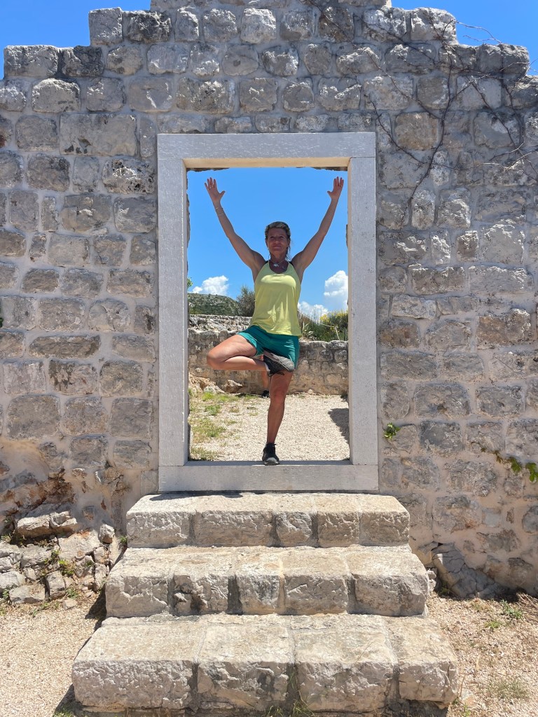 At the top we use the amphitheatre as our morning yoga studio, and we have views across Dubrovnik, behind to Bosnia and down to Montenegro.